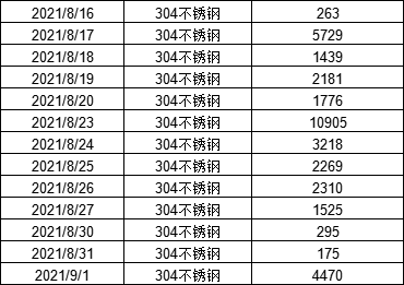 9月1日電子盤不銹鋼交收數據